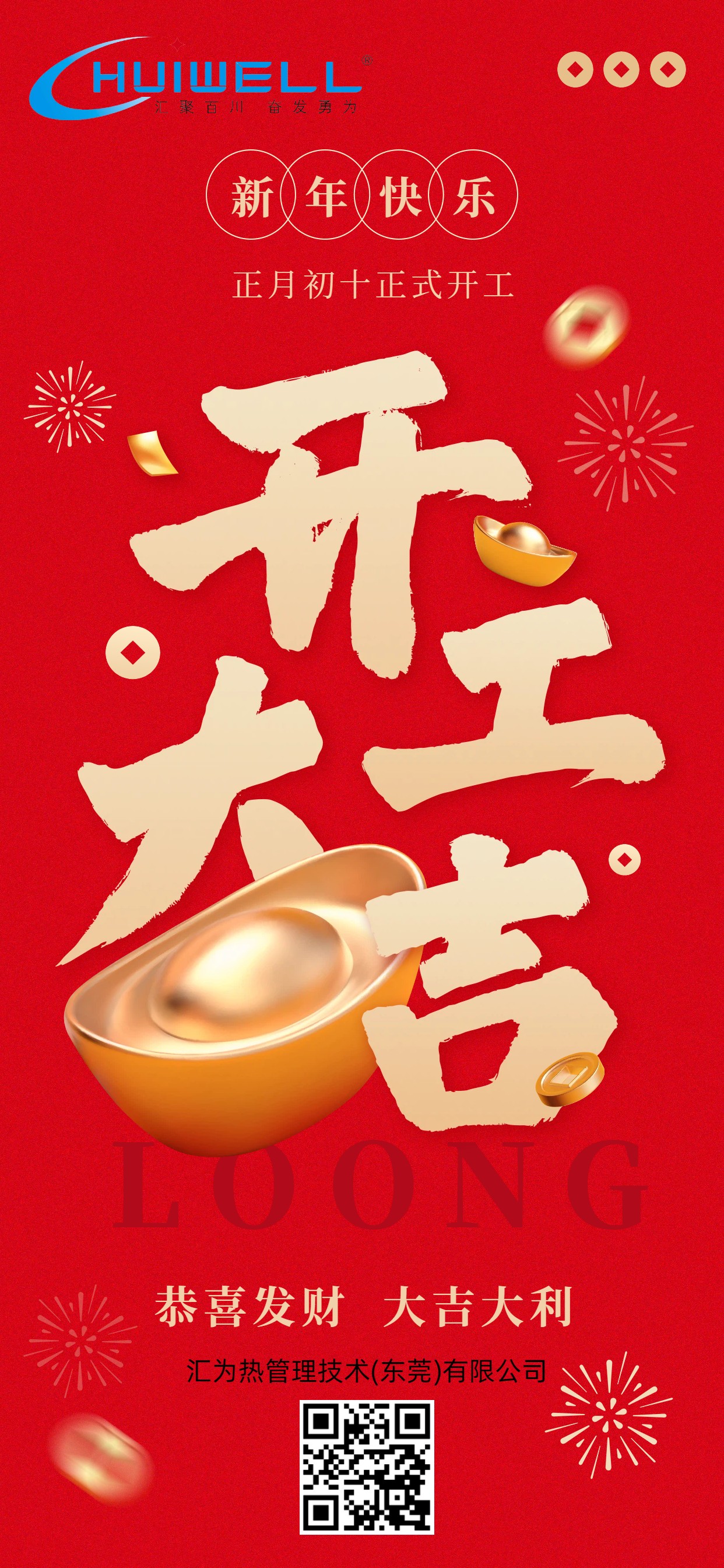 正月初十,十全十美,开工大吉!汇为热管理技术(东莞)有限公司今日全线复工,产能拉满。2026 年,我们将紧抓新能源与高端制造发展机遇,持续优化导热垫片、硅胶片等核心产品线,以更高效的交付能力,响应全球客户的每一份信赖。策马扬鞭,乘势而上!汇为愿与您携手,共赢热管理万亿新蓝海!